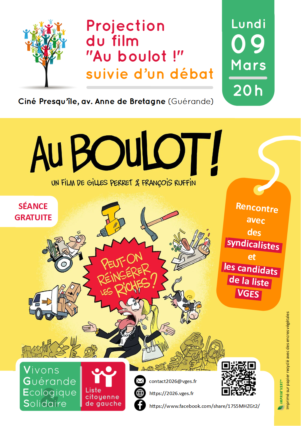 Vivons Guérande écologique et solidaire vous propose un ciné-débat autour du film « Au boulot ! » de Gilles Perret et François Ruffin.